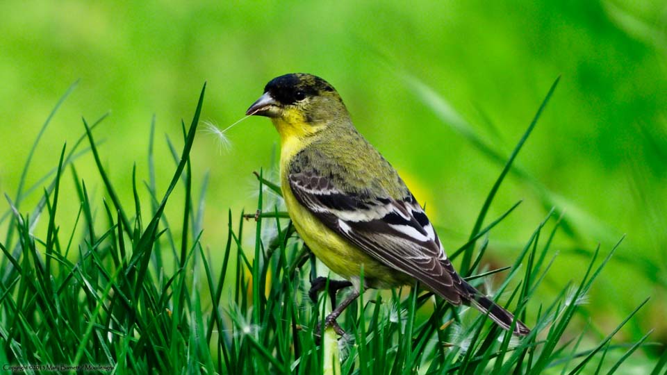 American Goldfinch eats dandelion seed