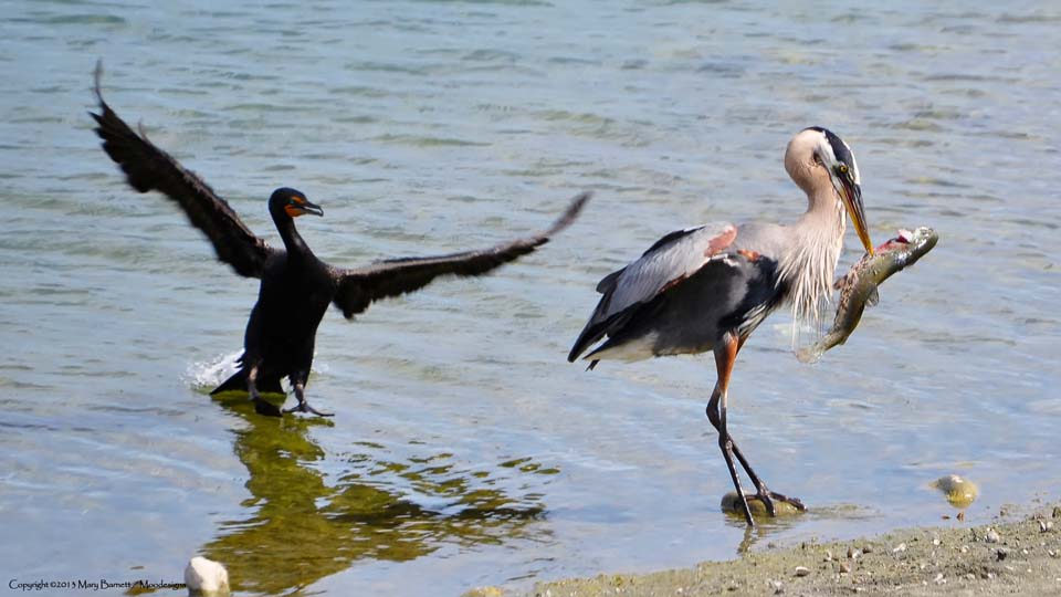 Cormorant wants the heron's fish