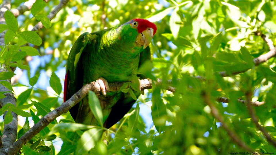 Someone's pet parrot escaped to a tree