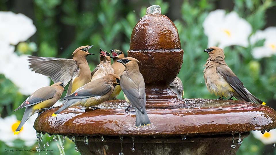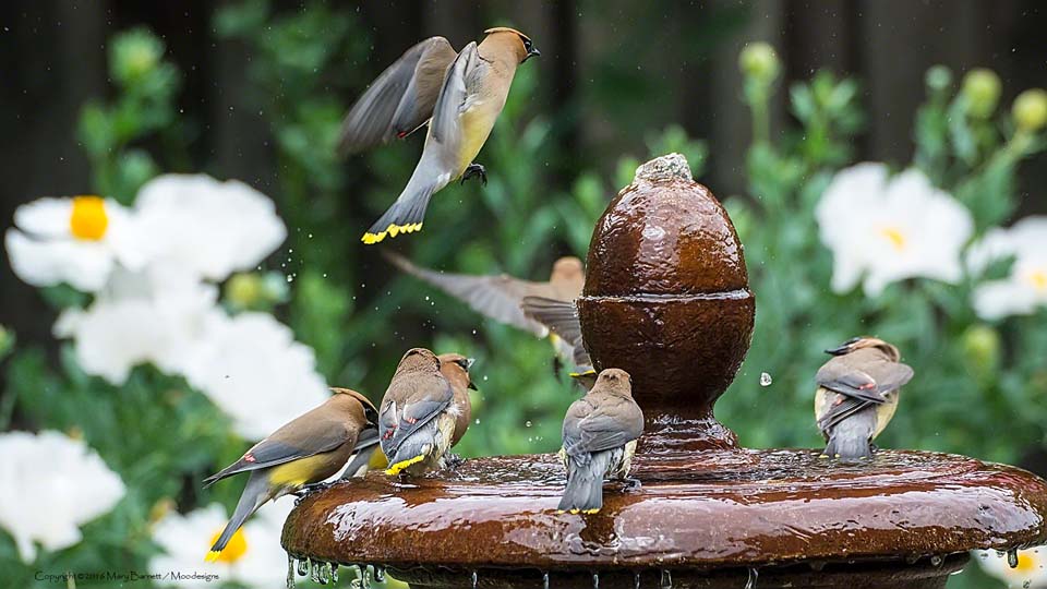 House finch takes a boisterous bath