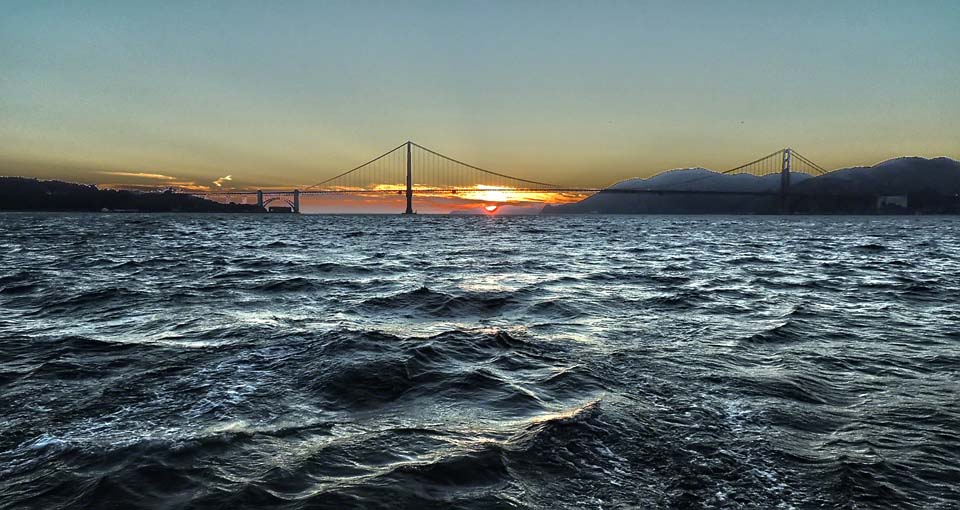 Through the Golden Gate at sunset