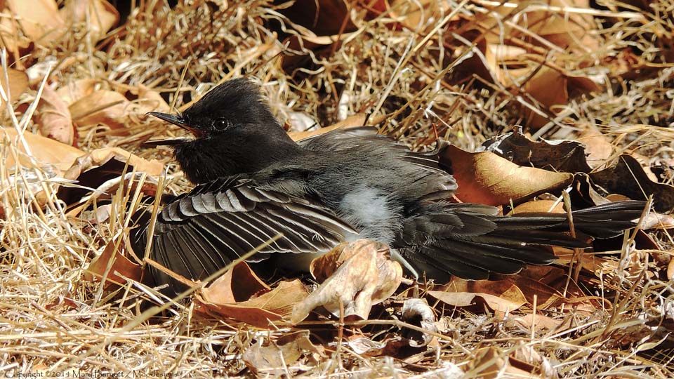 Black Phoebe taking a dust bath