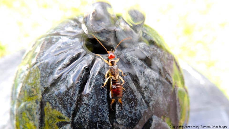 Earwig getting a drink