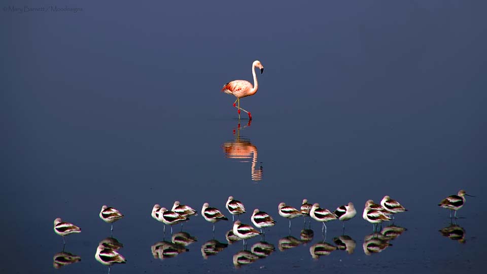 Chilean Flamingo with American Avocets