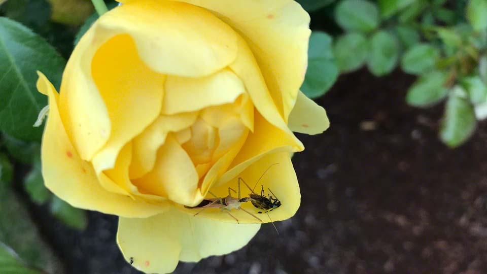 Assasin Bug eating a cucumber beetle